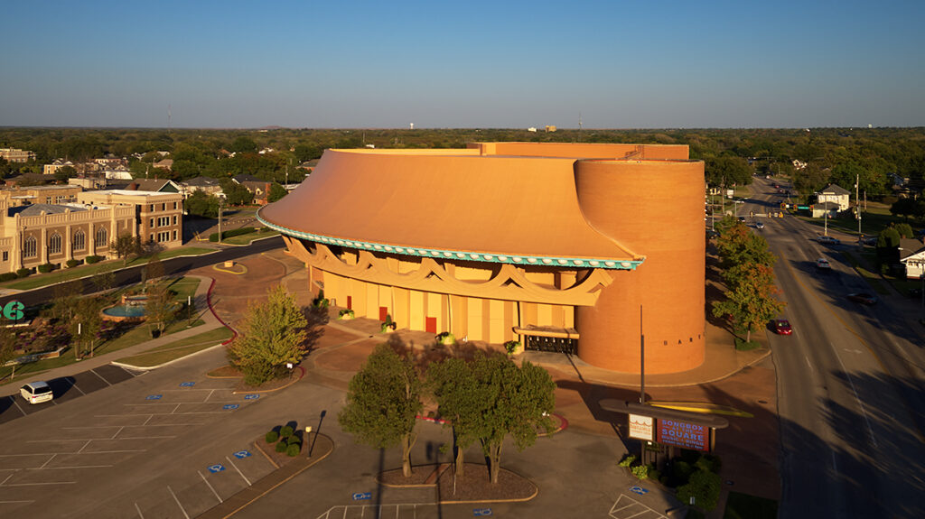 The iconic, earth-toned Bartlesville Community Center was designed by William Wesley Peters, chief architect of Taliesin Associated Architects of The Frank Lloyd Wright Foundation.